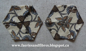 I used this method of combining two sets of fussy cut diamonds in my quilt Hexagreens but I used two different fabrics. The result? Yet another interesting hexagon!