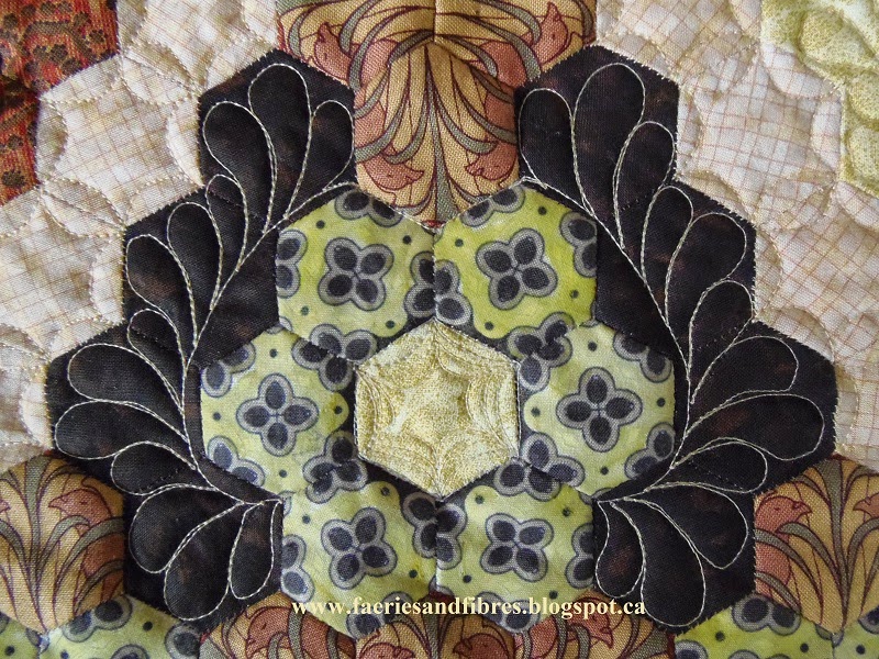 ReplyDeleteI fell off my chair when I saw the photo of your little feathers on the hexagons. Your quilting really blows me away!! Amazing!!